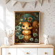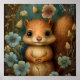 Woodland Squirrel Nursery Print with Blue Flowers