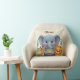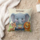 This woodland storybook animals birthday throw pillow features an adorable illustrated elephant holding a birthday cake, accompanied by a sweet deer and lion in soft, playful colors. The gentle storybook style creates a warm and cheerful look that’s perfect for children’s birthday celebrations.
