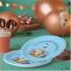 Cute cartoon fox, squirrel, skunk, chipmunk and racoon boy's baby shower paper plates. Check out all the colours, blue, yellow and green!