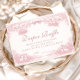 A soft and elegant baby shower design featuring delicate vintage-style blush pink toile illustrations. The frame is adorned with charming lambs, florals, celestial accents, and a romantic bow, creating a timeless storybook nursery aesthetic. Perfect for a classic, feminine celebration with a refined heirloom feel. The gentle pink palette and detailed engraving style give the design a sophisticated yet sweet atmosphere that works beautifully for traditional or cottagecore baby showers.