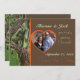 Woodland save the date announcement with photo accented in orange for the couple who love the outdoors. Customise text to suit your style. Upload a favourite photo.