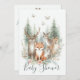 A soft watercolor illustration of woodland animals in the forest surrounded by flowers. Lovely for a gender neutral celebration.
