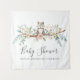 A soft watercolor illustration of woodland animals in the forest surrounded by flowers. Lovely for a gender neutral celebration.