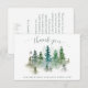 Cute thank you card printed with a whimsical watercolor painting of an owl and a bunny among trees. Great way to say thank you to guests attending a baby shower located in a woodland area or other nature location. Suitable for a party for a baby boy or baby girl as well as for a gender neutral event. You can edit text to add your own message.