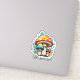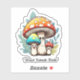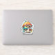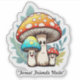 This vibrant sticker design showcases a cheerful mushroom family nestled under a lush green leaf in a bright, enchanting forest. With their playful expressions and colourful caps, the mushrooms embody the magic of nature, making it a perfect addition for fans of whimsical and fantasy-themed art. Celebrate the charm of the natural world with this delightful design!