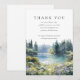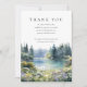 An elegant funeral memorial thank you card featuring a watercolor woodland forest wildflowers floral lake scene. Designed by Thisisnotme©
