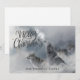 Woodlands wolves howling in the winter merry Christmas holiday cards featuring a script type.