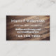 Business cards for a carpenter or builder, with wood image and four simple text templates. Rustic wood boards / floorboards background on the front with bold, printed text at the top for name or business. The line underneath is for the service, or profession. The third template will hold two or three lines as needed for business information, and the fourth template is for a phone number or contact info. Reverse has a light, wood grain image and is easy to handwrite any additional info for customers. Choose a size.