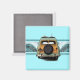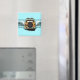 A vintage woody equipped with a pair of longboards, finds the perfect double breaking wave. The illustrated wave has a ghost image of a hibiscus pareau print. The vintage California license plate says Beachin'. This surf magnet comes in several colorways.