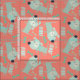 Fun, colourful, whimsical fabric great for dog lovers of all ages, features blue dogs, bones of clay and aqua, and text that reads Woof on a coral background.