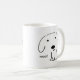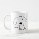 Dog lover's ceramic mug. Enjoy your favourite hot beverage out of this cute puppy dog coffee mug. Simple line drawing with "woof" that can be personalised for a cool custom gift.