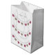 The design shown is a 7th wedding anniversary gift bag with pink and cream wool heart bunting on a white background.