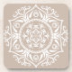 This white mandala sits on a light brown or tan background. The colour is soft and natural. In some lights it may look like a warm grey. Part of the Rosenn Mandala Collection.
