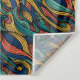 Is a vibrant and eye-catching one, featuring a colourful paisley pattern that gives the impression of being woven from numerous wool threads. The colour palette consists of four distinct and lively colours: yellow, turquoise, dark blue, and orange.