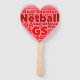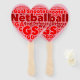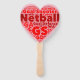 Fun sporty word art heart design netball themed fans. Netball word art design party supplies.