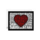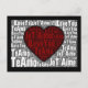 The words "I Love You" in English, "Je t'aime" in French and "Te Amo" in Spanish artistically fill a heart and a black background in random order with red and white text.