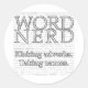 Tired of poor grammar and bad writing? Teachers, writers, editors, wordsmiths, and all defenders of proper language usage: be a proud Word Nerd! You got that education for a reason -- let's kick some adverbs! Design text resembles brushed steel, and the image background is a random list of grammatical terms.