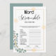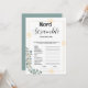 Design features left corner greenery incorporated into shiny rectangle with Greenish-grey background. Simple and Elegant. This Bridal shower game template combines two different fonts for more dynamic look.