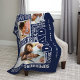 Celebrate your special and wonderful father in your life with our memorable and unique words for dad, father's day navy blue fleece blanket. The design features a collage of different words for dad combined with a three photo layout to display your own special family photos. Navy blue background with the words displayed in fun typographic design. Personalise the banner with your father's name and add your names to the front. The perfect gift for father's day, birthday, etc.