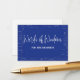Elegant royal blue words of wisdom advice for the graduate card with a beautiful script calligraphy font and a background of mathematical formulas and equations. Guests can write and add their messages at the back of the card and make the graduation party memorable forever. Illustrated and designed by Patricia Alvarez.