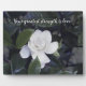 A beautiful gardenia blossom on wisdom plaque.
