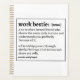 Work Bestie (noun): A Co-worker turned friend who shares the same daily torture and understands you perfectly because of it. A friendship grown through similar feelings of irritation and share eye rolls. see also: sanity keeper.