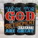 This inspiring design features the message "Work For GOD THE RETIREMENT BENEFITS ARE GREAT." "Work For" is in blue script, while "GOD" is bold and red with an outline. "RETIREMENT BENEFITS ARE GREAT" is highlighted in orange and blue, offering a unique, faith-based perspective on eternal rewards.