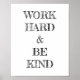 Kindness Poster - Hip typography poster of great words to live by. Hand lettered look for a contemporary cool style. Classic black on white colour scheme.