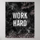 Work Hard Black Marble Rose Gold Glitter Quote Poster. Trendy custom designed marble typography motivational inspirational quote design. This girly girl boss design has a black marble background with rose gold glitter accents. Motivate yourself to hustle and work hard!