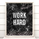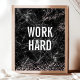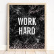 Work Hard Black Marble Rose Gold Glitter Quote Poster
