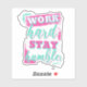 Colourful retro style, grunge motivational "Work hard stay humble" text design in pink, blue and white colours