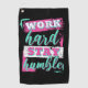 Colourful retro style, grunge motivational "Work hard stay humble" text design in pink, blue and white colours