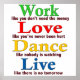 Work like you don't need the money, Love like you have never been hurt, Dance like nobody is watching, Live like there is no tomorrow. But this gift with this inspiration for someone who lives life to the fullest