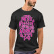 I give wanted to give this a 4 instead of a 5 because these Basic DARK T0shirts run unexpectedly SLIM or Narrow. Which is great if you do not have a potbelly, but I have a paunch. It isn't the shirt's fault that I've got a beer belly. The design and shirt itself is a quality cotton shirt. The color is more of a deep purple, but still a very pretty color. The Basic DARK T-shirts run a bit SLIMMER than the Basic Ts. The neck is a fraction narrower (or seems to be narrower) also. I'm a paunchy middle-aged woman and my neck is 12 inches (31cm) thick and the neckline fell about the same as in the photo of the man, and I had the desire to tug it a bit. So if you're a thick necked man or like loose shirts, be aware these are slimmer shirts. Once I get rid of my lockdown paunch it'll look great. The shirt washed well in cold water with no apparent bleeding. We don't have a dryer, so it hung dry. Did not shrink. Love the colors and the design. The design looks smaller on my shirt than it does on the model on-line. But still, it looks good on the shirt. The printing looks as it does on the model, just the size seems fractionally smaller. Washed garment in cold water, hung dry and design appeared unaffected.