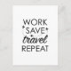 Work Save Travel Repeat Postcard