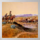 Charles (CM) Russell, the “cowboy artist”, created more than 2,000 paintings of cowboys, Indians, and landscapes set in the Western United States. He lived and worked among the cowboys and the Blood Indian tribe in his younger years. This image is called “Worked Over” and depicts a water hole on the prairie running dry.