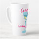 This is a large, personalised latte mug for the office, with the words "Working for gin" over a stylised cocktail glass full of gin and tonic with ice and lemon. You can personalise the coffee mug with any name.