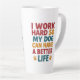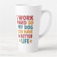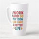 This design is for every dedicated dog owner out there. Featuring the relatable phrase "I work hard so my dog can have a better life" in a mix of vibrant colors, this shirt is a funny and heartfelt way to show your devotion to your furry best friend. The addition of subtle paw prints makes it the perfect design for anyone who loves their canine companion more than anything.