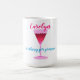 This is a cheeky personalised mug for the office, with the words "Working for prosecco" in turquoise blue over a stylised drawing of a pink cocktail glass full of prosecco. You can personalise the coffee mug with any name.