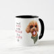 Here's the perfect office mug for the Poodle Dog owner! At the middle is a portrait of a Poodle wearing red sunglasses and a green scarf. The image is printed on two sides, and in the middle is red and black text that says "I work HARD so my POODLE has a BETTER life". Cute! *If you prefer to change or remove the text, you may do so.