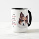 Here's the perfect office mug for the Shetland Sheepdog owner! At the middle is a portrait of a Sheltie wearing red sunglasses. The image is printed on two sides, and in the middle is red and black text that says "I work HARD so my SHELTIE has a BETTER life". Cute! *If you prefer to change or remove the text, you may do so.