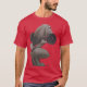 I give wanted to give this a 4 instead of a 5 because these Basic DARK T0shirts run unexpectedly SLIM or Narrow. Which is great if you do not have a potbelly, but I have a paunch. It isn't the shirt's fault that I've got a beer belly. The design and shirt itself is a quality cotton shirt. The color is more of a deep purple, but still a very pretty color. The Basic DARK T-shirts run a bit SLIMMER than the Basic Ts. The neck is a fraction narrower (or seems to be narrower) also. I'm a paunchy middle-aged woman and my neck is 12 inches (31cm) thick and the neckline fell about the same as in the photo of the man, and I had the desire to tug it a bit. So if you're a thick necked man or like loose shirts, be aware these are slimmer shirts. Once I get rid of my lockdown paunch it'll look great. The shirt washed well in cold water with no apparent bleeding. We don't have a dryer, so it hung dry. Did not shrink. Love the colors and the design. The design looks smaller on my shirt than it does on the model on-line. But still, it looks good on the shirt. The printing looks as it does on the model, just the size seems fractionally smaller. Washed garment in cold water, hung dry and design appeared unaffected.