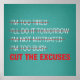 The design of this poster is simple yet powerfully compelling, capturing the essence of what it means to push beyond limits. The image features bold typography in crisp white letters that stand out against a vivid black background, ensuring the inspirational words "Cut the Excuses" capture your attention immediately. This straightforward and direct quote is surrounded by an arrangement of subtle geometric accents that add a modern touch without distracting from the central message.