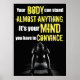 Ideal for gym lovers and fitness enthusiasts, this poster serves as a daily motivator to achieve dreams and overcome mental barriers. The saying, "Your body can stand almost anything. It's your mind you have to convince," is a profound reminder that often, the biggest hurdles in the path to success are the ones we create ourselves. It's a perfect fit for entrepreneurs and success leaders who thrive on pushing boundaries and achieving greatness. This art piece draws a parallel between physical fitness and entrepreneurship, highlighting the mental toughness required in both arenas.