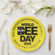 Make May 20th (World Bee Day) a memorable event with these paper plates, which feature the 2024 theme "Bee Engaged in Pollinator-Friendly Agricultural Production" encircling the words World Bee Day 2024 with a stylised honeybee hovering over the letter B.