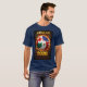 I give wanted to give this a 4 instead of a 5 because these Basic DARK T0shirts run unexpectedly SLIM or Narrow. Which is great if you do not have a potbelly, but I have a paunch. It isn't the shirt's fault that I've got a beer belly. The design and shirt itself is a quality cotton shirt. The color is more of a deep purple, but still a very pretty color. The Basic DARK T-shirts run a bit SLIMMER than the Basic Ts. The neck is a fraction narrower (or seems to be narrower) also. I'm a paunchy middle-aged woman and my neck is 12 inches (31cm) thick and the neckline fell about the same as in the photo of the man, and I had the desire to tug it a bit. So if you're a thick necked man or like loose shirts, be aware these are slimmer shirts. Once I get rid of my lockdown paunch it'll look great. The shirt washed well in cold water with no apparent bleeding. We don't have a dryer, so it hung dry. Did not shrink. Love the colors and the design. The design looks smaller on my shirt than it does on the model on-line. But still, it looks good on the shirt. The printing looks as it does on the model, just the size seems fractionally smaller. Washed garment in cold water, hung dry and design appeared unaffected.