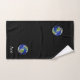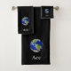 World globe and text on black Bath Towel Set. Text can be personalised. Text only on one side!