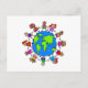 Cute cartoon whimsical illustration of a group of happy and diverse little stick figure boys and girls holding hands around the world. Easily customise and choose your own background colour or add text. Image available on various gifts and products.