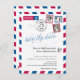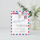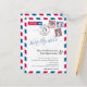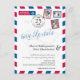 A fun creative Wedding Save the Date to send to all your guest announcing your destination wedding. Distressed Airmail design in red and blue with map of the United States. Two hearts in the location of MONTREAL CANADA TO LONDON ENGLAND UK connecting them together. Add three of your favourite photos for the stamps. If you have a different location please email paula@labellarue.com BEFORE PLACING AN ORDER so a new design can be created for you to work with.