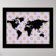 A graphic black world map silhouette with a compass wind rose pattern background - if you prefer, the soft blue sea colour can be easily changed on "customise it" button. a beautiful print design for the beach house interior decor